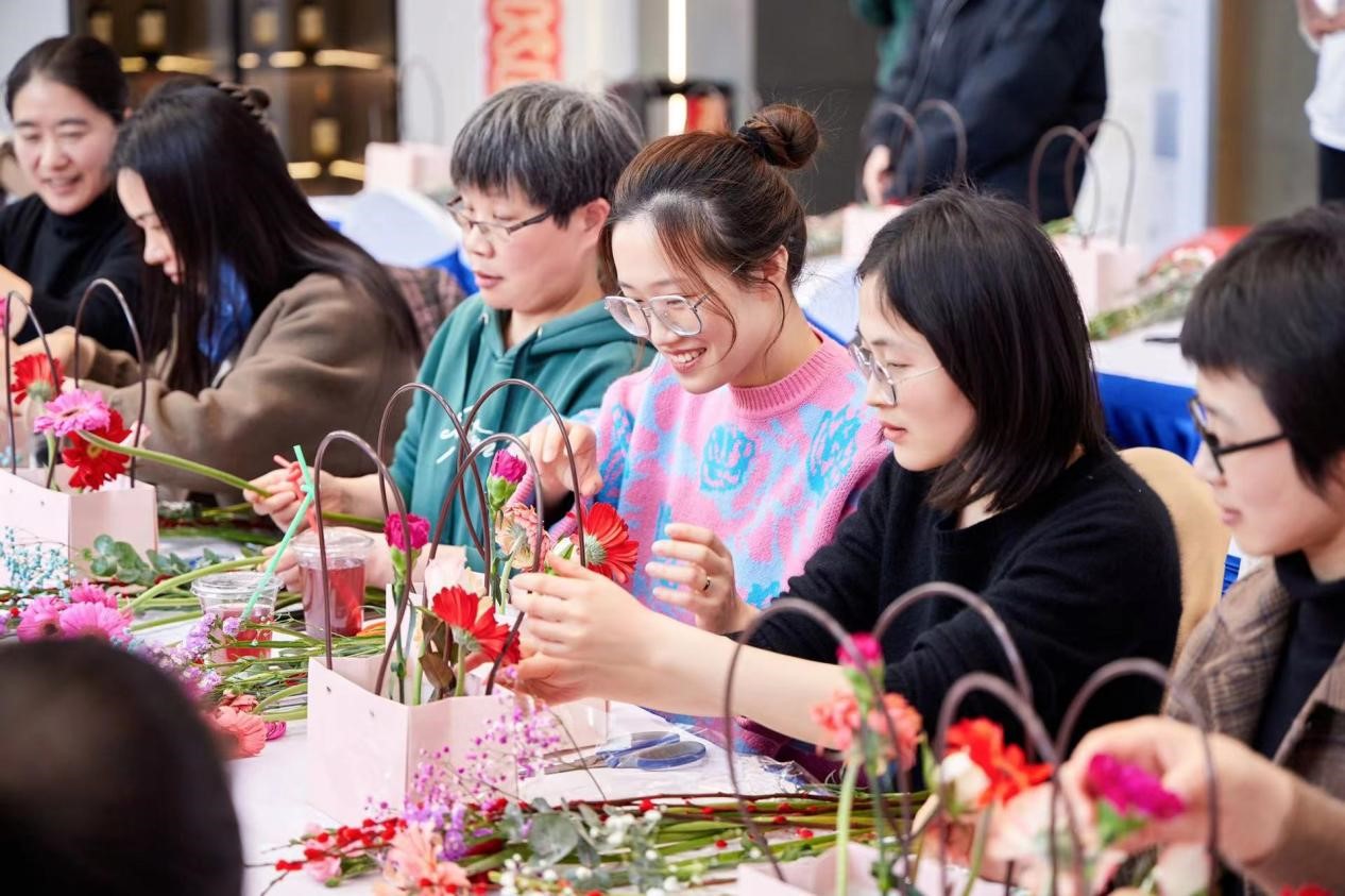 此次活動(dòng)結(jié)合盛和公司房地產(chǎn)行業(yè)特點(diǎn),將活動(dòng)與樓盤推廣相結(jié)合。地點(diǎn)設(shè)在盛和公司與融創(chuàng)公司合作的平潮“潮啟未來”項(xiàng)目?;顒?dòng)邀請(qǐng)了花藝?yán)蠋煟o大家講授選花、裁剪、顏色搭配、造型等方面的插花技巧。一枝枝鮮花鋪在桌面上,大家在花藝師的指導(dǎo)下,進(jìn)行嘗試和實(shí)踐。在一修一剪之間,桌上一盆盆細(xì)致精美、別出心裁的插花作品逐漸誕生。插花結(jié)束后,又舉辦了分享樓盤推廣點(diǎn)贊活動(dòng),將樓盤推廣信息在朋友圈內(nèi)進(jìn)行展示,在15分鐘內(nèi)點(diǎn)贊最高6名女職工還可以得到特殊的獎(jiǎng)勵(lì)。大家踴躍參加,發(fā)動(dòng)親朋好友推廣點(diǎn)贊,活動(dòng)現(xiàn)場(chǎng)歡聲笑語,你追我趕,進(jìn)行了激烈的PK。