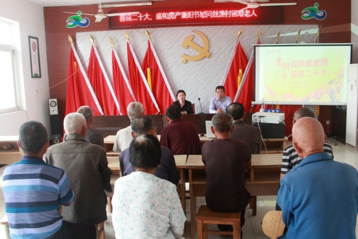 9月23日重陽佳節(jié)前夕,為充分發(fā)揮省級文明單位示范帶動作用,弘揚中華民族尊老敬老的傳統(tǒng)美德,盛和房產(chǎn)聯(lián)系到幫扶聯(lián)建單位如皋絲漁村,開展“喜迎二十大,歡樂度重陽”慰問活動,為共計十五戶年邁孤寡老人及困難家庭送去節(jié)日慰問品,并向他們致以溫暖的節(jié)日問候。